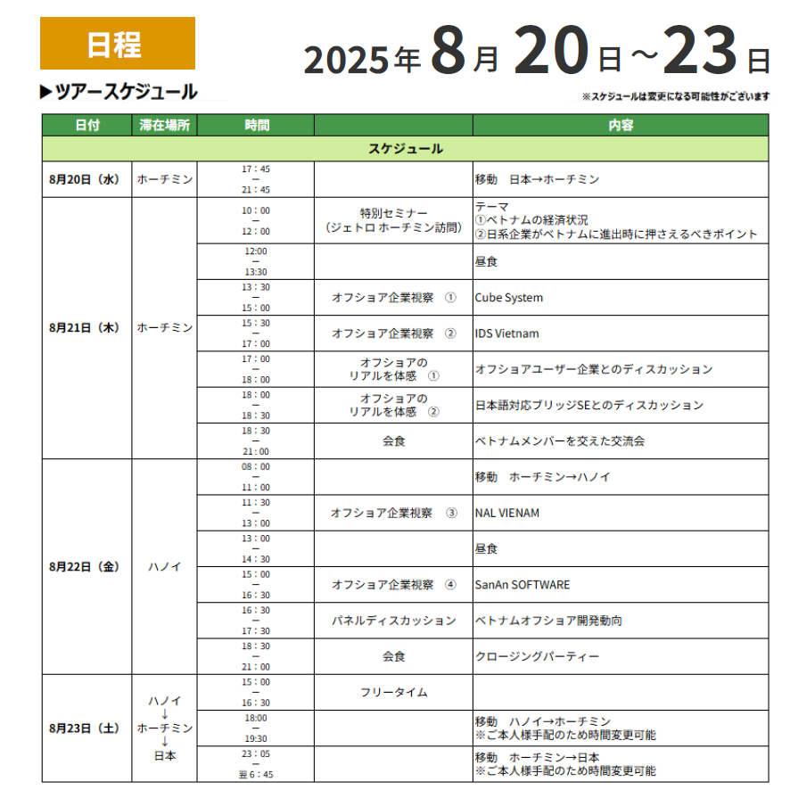 VOC主催2025年度 VOCベトナムオフショア視察ツアーの開催スケジュールが決定いたしました。