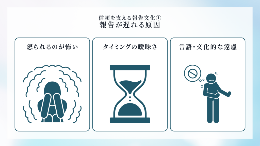 その背景には、怒られる恐怖、報告基準の曖昧さ、文化的な遠慮があります。